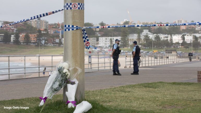 A memorial site has been established at the rear of Bondi pavilion.